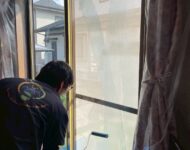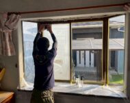 施工は、しっかりと養生してから、窓を磨き上げ、塗料を塗っていきます。